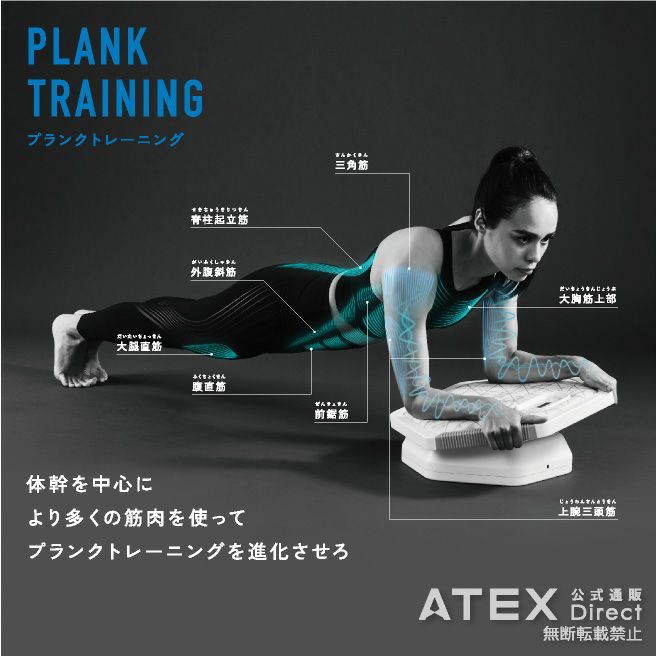 The plank is a fundamental core training exercise. It involves lying face down with your forearms, elbows, and toes on the ground. The Atex EMS Plank Trainer