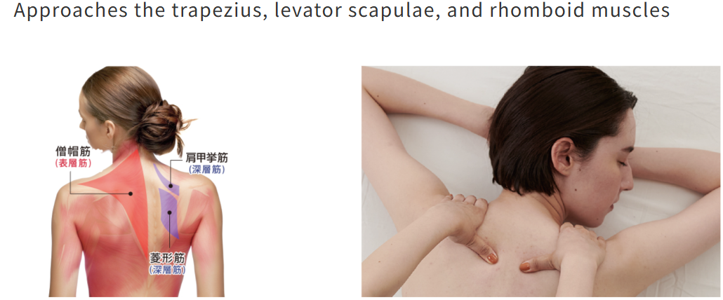 The massage area has been expanded by making the neck and shoulder massage balls larger and oval-shaped. The massage area for the back and waist has also been expanded by 6cm,