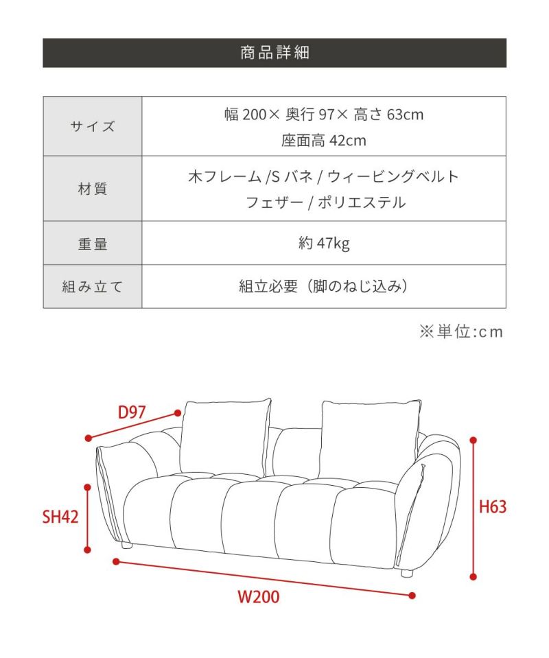 At 200cm wide, it's large enough to comfortably seat two to three people.